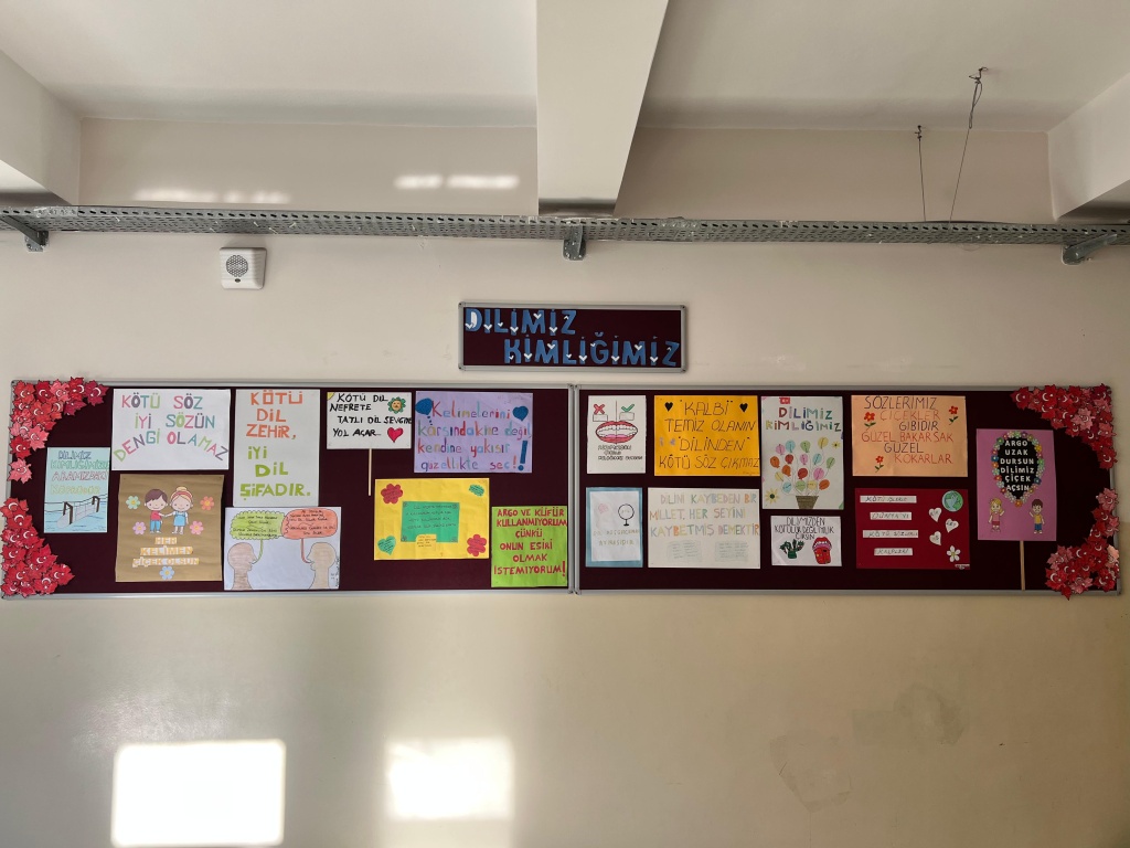 Bağcılar İlçe Milli Eğitim tarafından yürütülen “Dilimiz Kimliğimiz” projesi kapmasında dilimizin doğru ve kötü sözden arınmış olarak kullanılması ile ilgili öğrencilerimiz tarafından afişlerimiz hazırlanmıştır. Hazırlanan bu afişler okulumuz proje panosunda yerini almıştır.